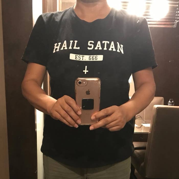 No, Goyal is not actually a Satan worshipper. But she is a member of The Satanic Temple, and bought the shirt to support the organization. (Though it is a recognized church, The Satanic Temple is a non-theistic [and non-Satan-worshipping] religious organization. It’s become well-known for its activism on issues such as separation of church and state, free speech, and religious freedom.)