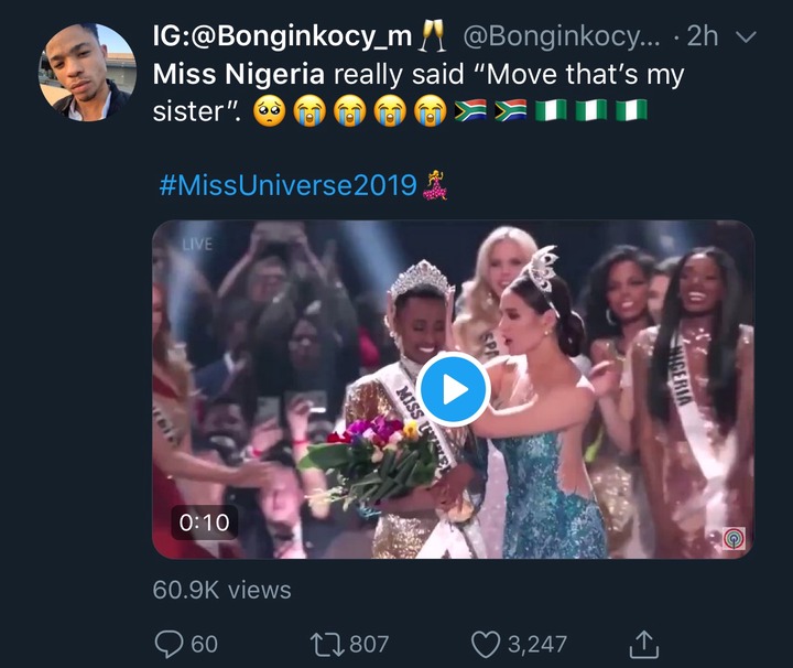 Meanwhile, fans have reacted to the gesture of Miss Nigeria during the presentation of Crown to Miss Universe 2019.