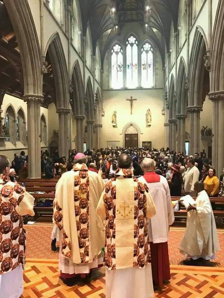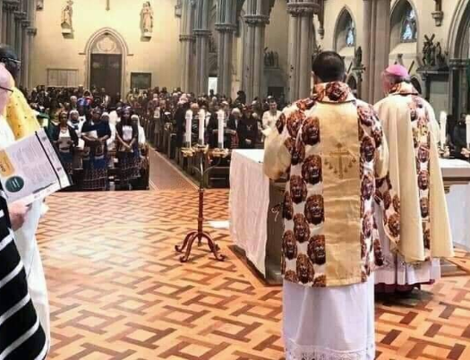 Editor's Picks World NewsPhotos: Catholic Bishop & Priests Celebrate Mass Rocking Isi-Agu Attire In The UK by adminFebruary 24, 2020February 24, 202001058 Share0 A Catholic Bishop in Portsmouth, United Kingdom and some of his priests recently celebrated mass in their vestments designed with Isi Agu.. See more photos of them rocking the Igbo attire below