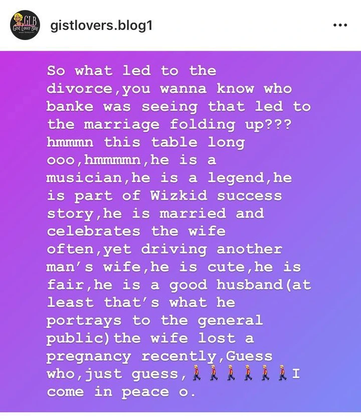 ago, same year that Gabriel Afolayan and his wife got married. The blogger is saying that Banke cheated on her husband with this popular singer, a news that many fans of the singer and couple are refusing to believe, because the singer in question has been scandal free in over 15 years of his career.