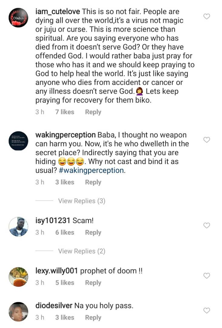 Nigerians are expressing their displeasure over the video. They argue that it is unfair for the clergyman to insinuate that those currently infected by the virus are not hiding under God’s shadow.