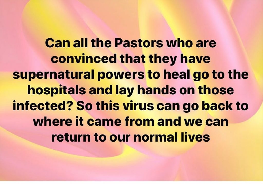 According to her, if they claim to be called by God then they should go to the hospitals and make sure to cure all those suffering from this new virus. Dokubo took to social media to throw out her challenge.