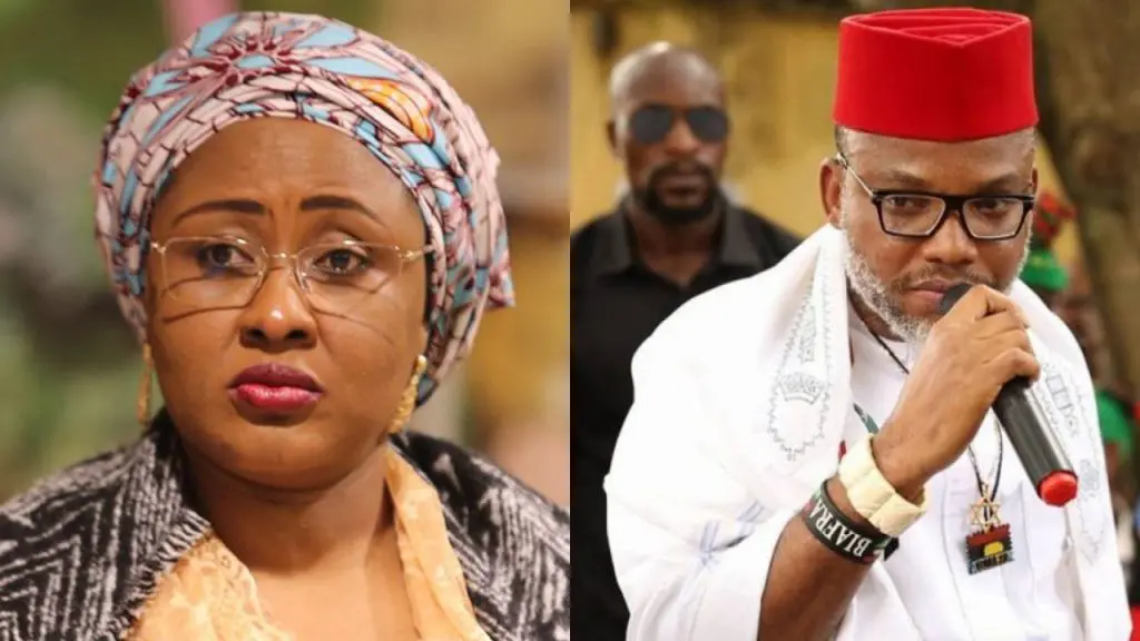 Nnamdi Kanu, the leader of the seccesionist group, the Indigenous People of Biafra, has claimed that he was certain that Nigeria’s First Lady, Aisha Buhari and others will end up in jail.